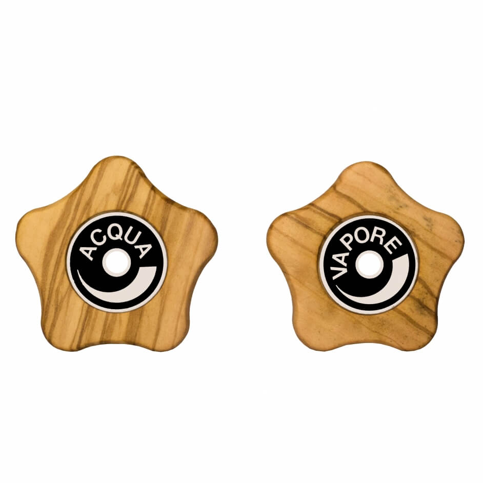 Hoge kwaliteit 5 delige olijfhouten accessoire set van ECM bestaande uit: hendels, draaiknoppen en twee pistondragers (één en twee uitlopen). Deze set is geschikt voor ECM modellen met een draaiknop.