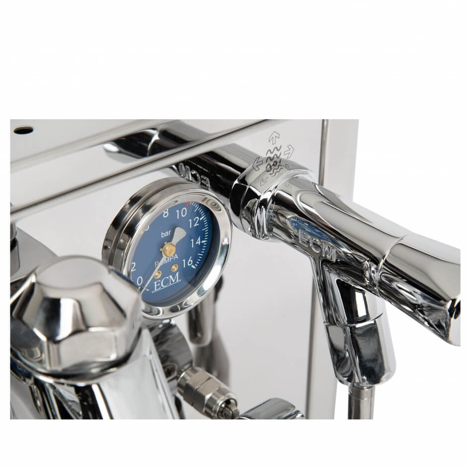 De ECM Techniek VI combineert geavanceerde technologie met een strak, stijlvol design. De professionele tuimelventielen van messing en chroom schitteren naast de grote manometers, waardoor het aflezen van druk en temperatuur eenvoudig wordt. Met de comfortabele PID-regeling stel je eenvoudig individuele instellingen naar wens in, zodat elke espresso perfect aansluit bij jouw smaak.