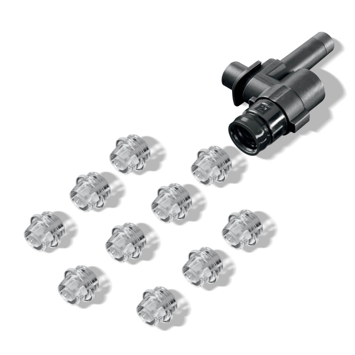 De set bestaat uit 10 vervangbare melkuitlopen. Om hygiƫnische redenen adviseren wij de vervangbare melkuitloop regelmatig (om de ca. 2 maanden) te vervangen.