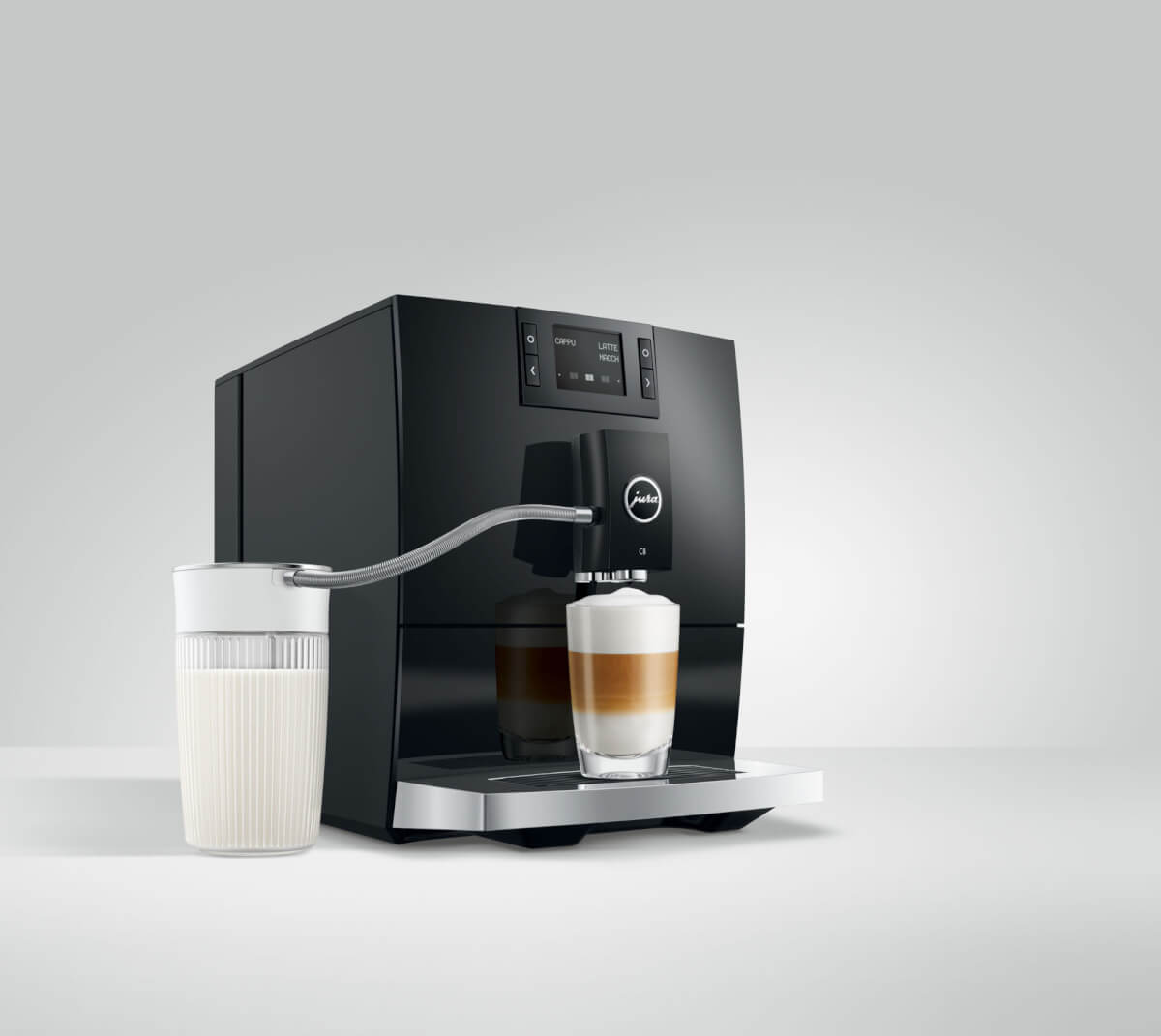 Melkschuim met fijne poriën maakt latte macchiato tot een genot en vervolmaakt de tongstrelende smaak van cappuccino. Beide klassiekers met melkschuim bereidt de C8 met één druk op de knop vers en in ongekende kwaliteit. Het luchtige genot is te danken aan de technologie voor microschuim, waarbij de melk in aparte kamers twee keer wordt opgeschuimd en perfect melkschuim wordt gecreëerd.
